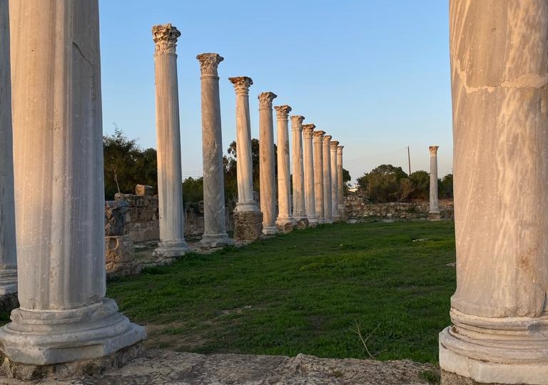Kıbrıs’ın doğu kıyısında, Gazimağusa’nın kuzeyinde yer alan Salamis Harabeleri’ni ziyaret ettim. Tarihin katman katman üst üste yığıldığı bu antik kent, binlerce yıl öncesinden bugüne kadar birçok medeniyetin izlerini taşıyor. Adeta taşların arasında tarih konuşuyor.Bölgeye adım attığım anda taşların diliyle karşılaştım. Antik tiyatro, gymnasium, hamamlar, ticaret yerleri, toplanma alanları, pazar yerleri, su depoları ve mozaik döşemeli yapılar geçmişin ihtişamını yansıtıyor.